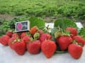 Ягоды правильной конической или биконической формы, при полном созревании становятся красными (немного светлее, чем у «Альбиона»), блестящими. Семена слабо вдавлены в мякоть, чашечки крупные (по диаметру больше основания ягод), держатся крепко, тип отрыва – сухой. Мякоть красная (с оранжевым оттенком), сочная. Отзывы о вкусовых качествах плодов противоречивы, но большинство садоводов оценивают их как отличные: 4,3-4,5 баллов из 5, некоторые считают мякоть слишком грубой и хрустящей. Благодаря плотной текстуре ягоды имеют универсальное назначение, отлично транспортируются и хранятся, не теряя своего товарного вида.